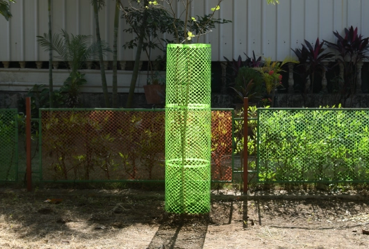 Hexagonal-patterned tree guard is manufactured in tubular forms for easy installation with the support of bamboo or any other fabrication.